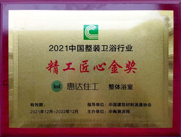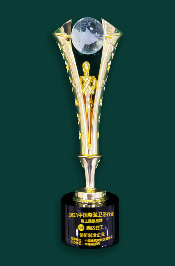 作為建材與家居行業(yè)的年度盛事,來自全國家居建材行業(yè)的專家、房地產(chǎn)企業(yè)家、工程建設(shè)單位負(fù)責(zé)人以及行業(yè)知名媒體人等精英齊聚一堂,共話綠色建筑發(fā)展新趨勢。經(jīng)過專家組綜合評審,惠達住工憑借強大的品牌影響力以及卓越的產(chǎn)品質(zhì)量分別榮獲2021年中國整裝衛(wèi)浴行業(yè)“自主民族品牌”領(lǐng)銜制造企業(yè)獎和“精工匠心金獎”,同時,惠達住工總經(jīng)理楊春被評為“陶瓷衛(wèi)浴產(chǎn)業(yè)鏈制造領(lǐng)域杰出人物”。